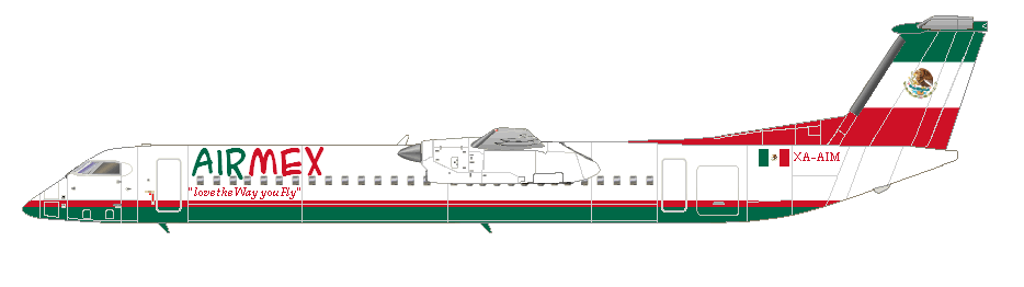 Also, could I get Dash 8- Q400 with aforementioned specs and Mexican Flag on the tail.